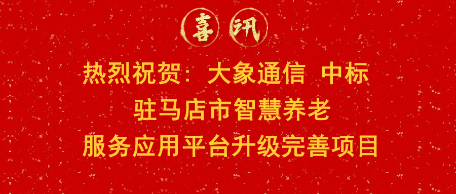 中標(biāo)喜訊 | 熱烈祝賀大象通信中標(biāo)駐馬店市智慧養(yǎng)老服務(wù)應(yīng)用平臺升級完善項目
